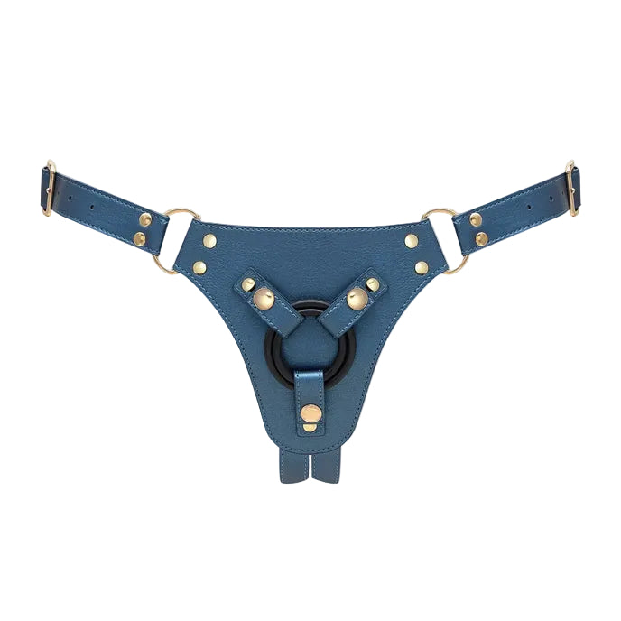 Strap-On-Me Curious Leatherette Harness - Metallic Blue