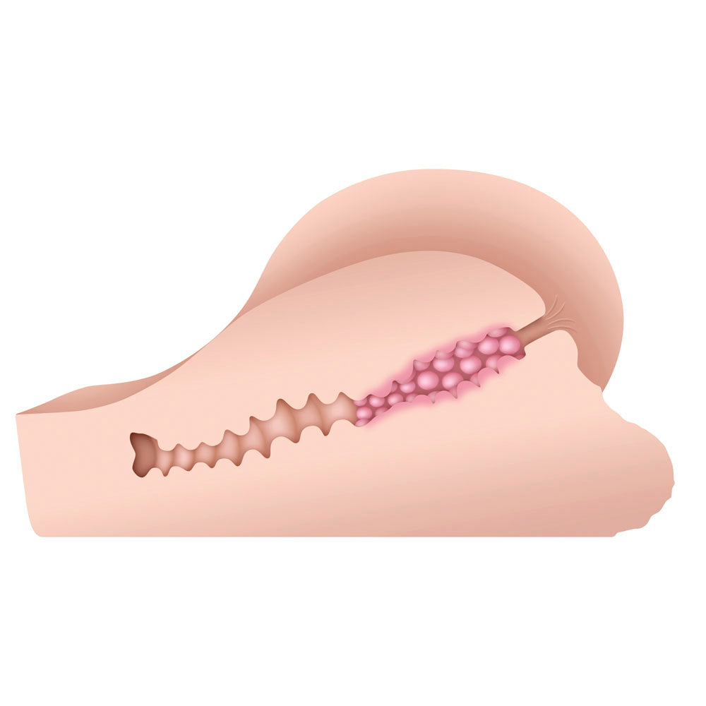 This life-like stroker is designed to indulge erotic fantasies and deliver satisfying pleasure. Sculpted from stretchy soft TPE rubber, its round curves and sensual shapes accentuate the tight channel in between. Enjoy a visceral, realistic experience with this body safe toy that feels so good against your bare skin and yields under pressure with a firm flexibility that will drive you wild! Latex free and waterproof.