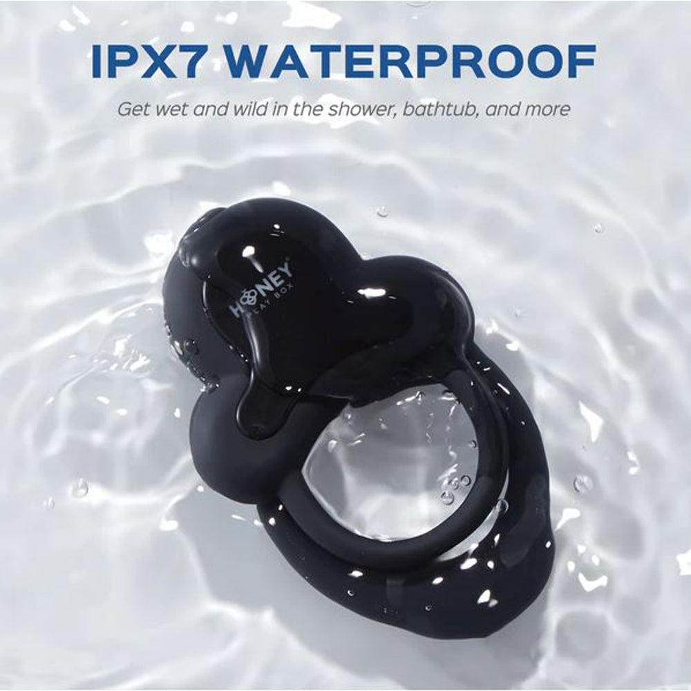 Discover twice the pleasure and make it last twice as long with this duo penis ring. The smaller ring slides down to the base of the shaft, while the larger ring provides firm support for his testicles, restricting blood flow for a firmer erection and enhanced stamina during sex. At the same time, you’ll both enjoy a buzzing clitoral and perineum massage!