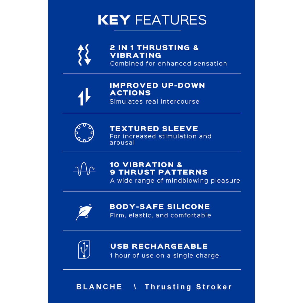 Reaching up to 300 thrusts per minute and a thrusting distance of 4cm, Blanche is one of the most powerful automatic masturbators on the market.