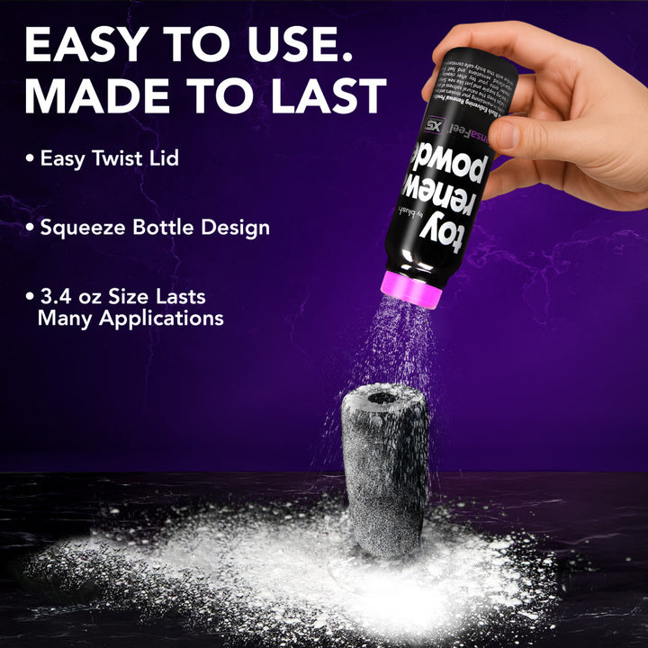 A dusting powder to refresh your Favorite TPE / TPR Strokers and toys to maintain their lifelike texture. Twist lid and squeeze bottle for ease of application. Refreshes self lubrication properties in self lubricated toys. Lab tested & verified body safe. 3.4 oz sized bottle for long term use. This travel powder is safe for TPE dolls, strokers, dildos and other adult toys.