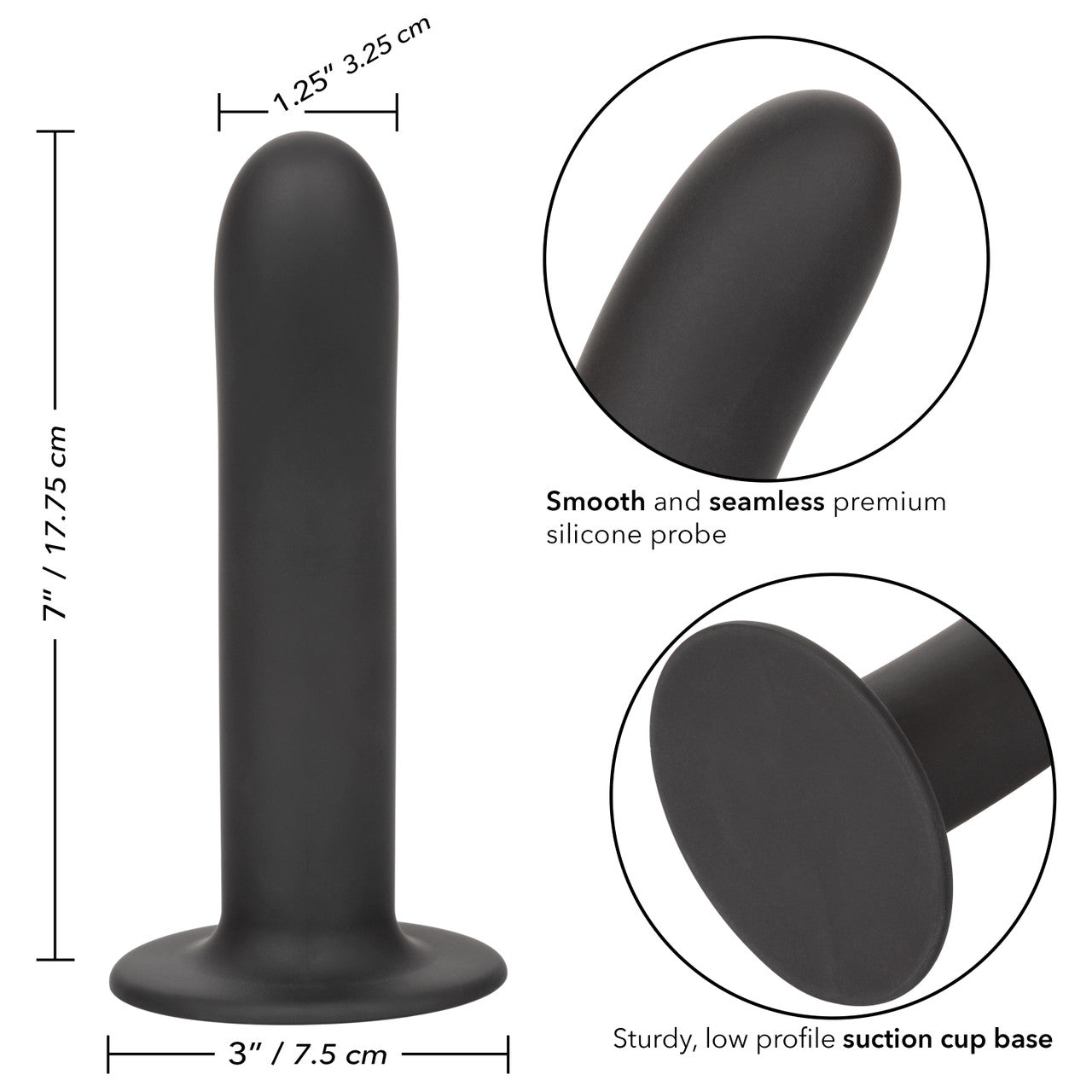 The powerful suction-cup base secures firmly to any flat surface for hands-free fun and also fits most O-ring harnesses for versatile strap-on play. Crafted from premium, hypoallergenic silicone, this sleek black dildo is body-safe, unscented, and phthalate-free for worry-free pleasure.