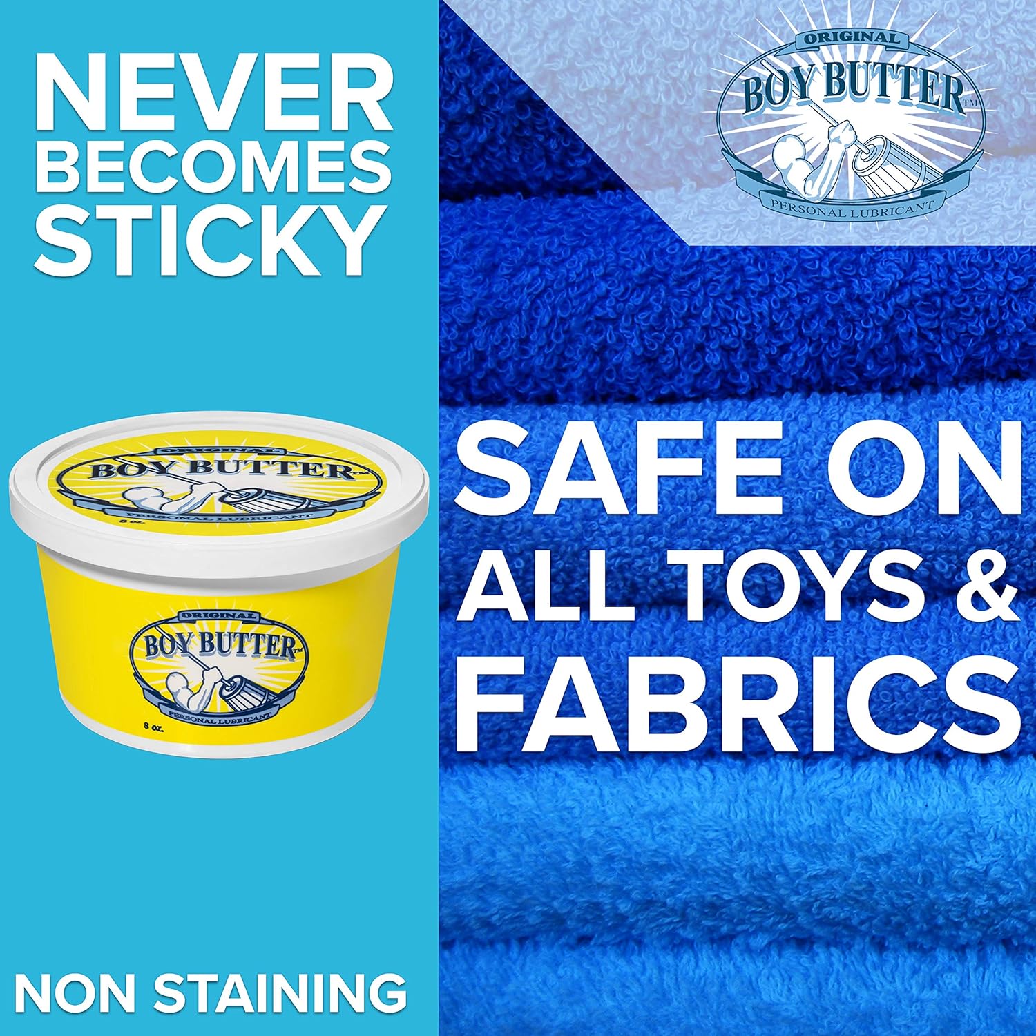 Spice up your intimate life and get ready for prolonged, smooth escapades, with your trusted partner and more enjoyable self-pleasuring time. Keep things slipping and sliding in your bedroom. BOY BUTTER is compatible with all non-latex products.