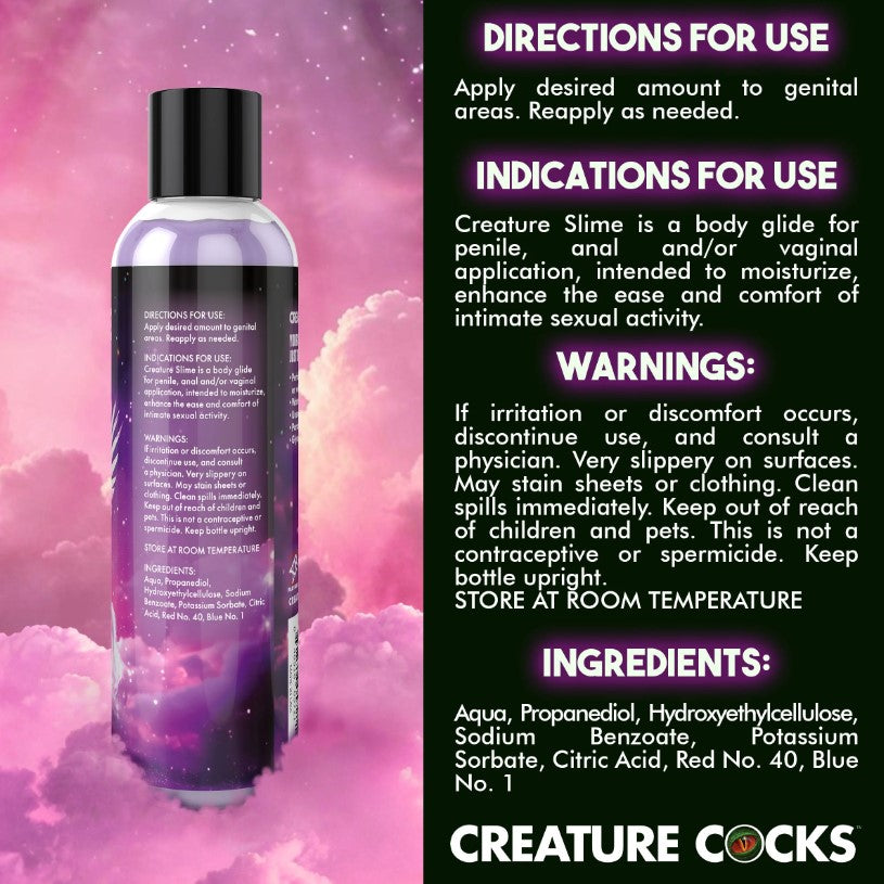 Engage in thrilling adventures with Creature Slime. This premium, water-based lube adds a slippery, satisfying glide as you're getting rough with mythical monsters! Ideal for exploring both solo and with your favorite creatures, you can enjoy every sensation uninterrupted by scent, thanks to its fragrance-free formulation. The water-based lube ensures easy cleanup with soap and water, making post-play care a breeze. Paraben and glycerin-free, it's kind to your internal balance, protecting your pH levels for comfortable, safe fun. Enhance your monster-play with a lube that promises maximum pleasure and safety!