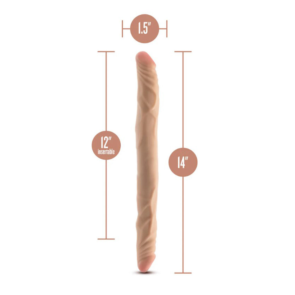 Dr. Skin Plus 14 Inch Double Dong – Extra Long Double-Ended Realistic Dildo With A Posable Shaft - Beige