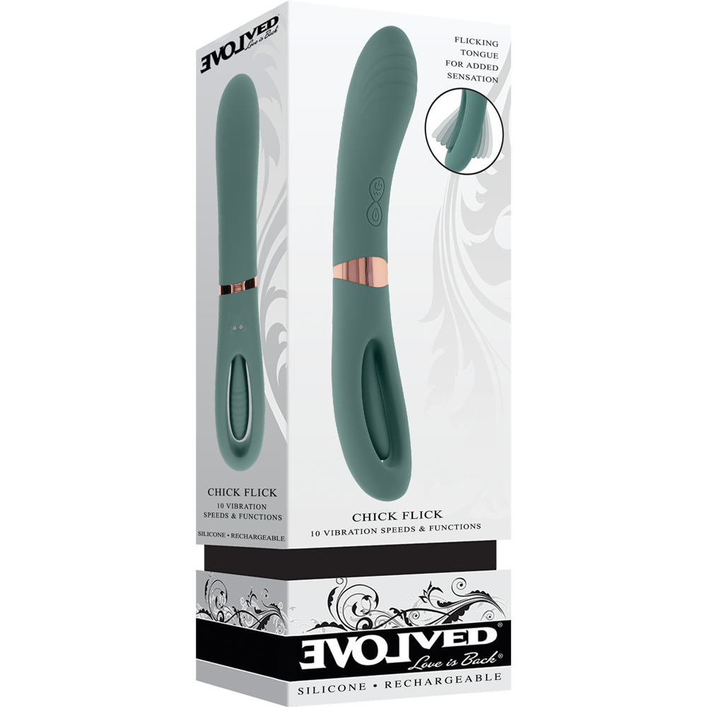 Evolved Chick Flick Dual-Ended Flicking & G-Spot Vibrator – Green & Rose Gold