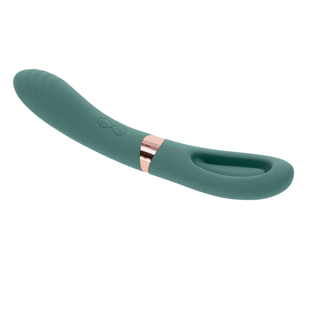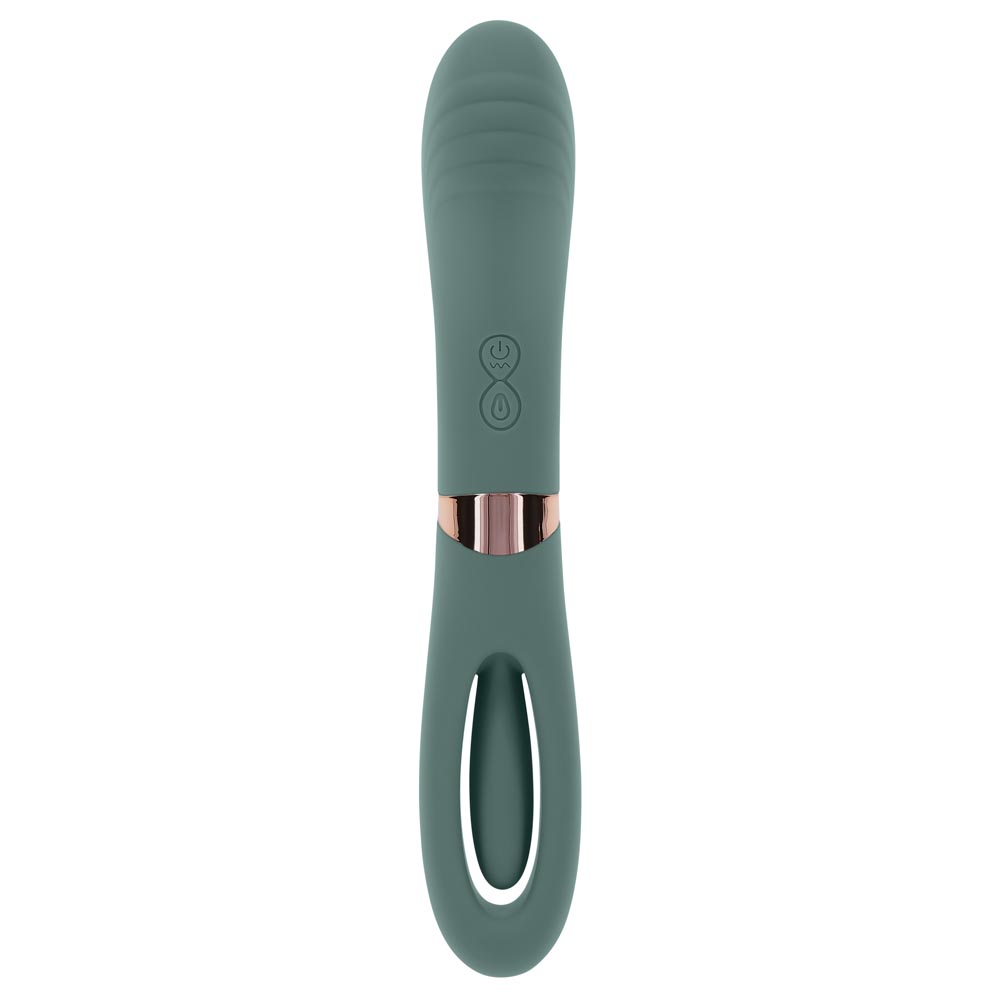 Two sensations, one toy. Flicking tip + ribbed G-spot shaft deliver double the pleasure in a luxe green & rose gold design.