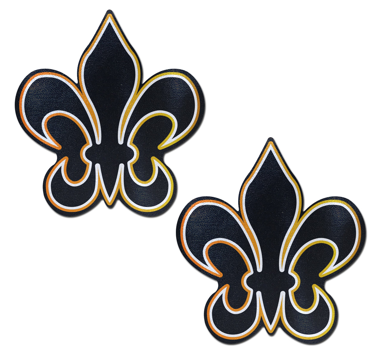 Fleur-de-lis: Black, White & Gold New Orleans Nipple Pasties by Pastease® are hand-made in the USA of soft form-fitting material that forms seamlessly to curves and resists wrinkling over hardening nipples.