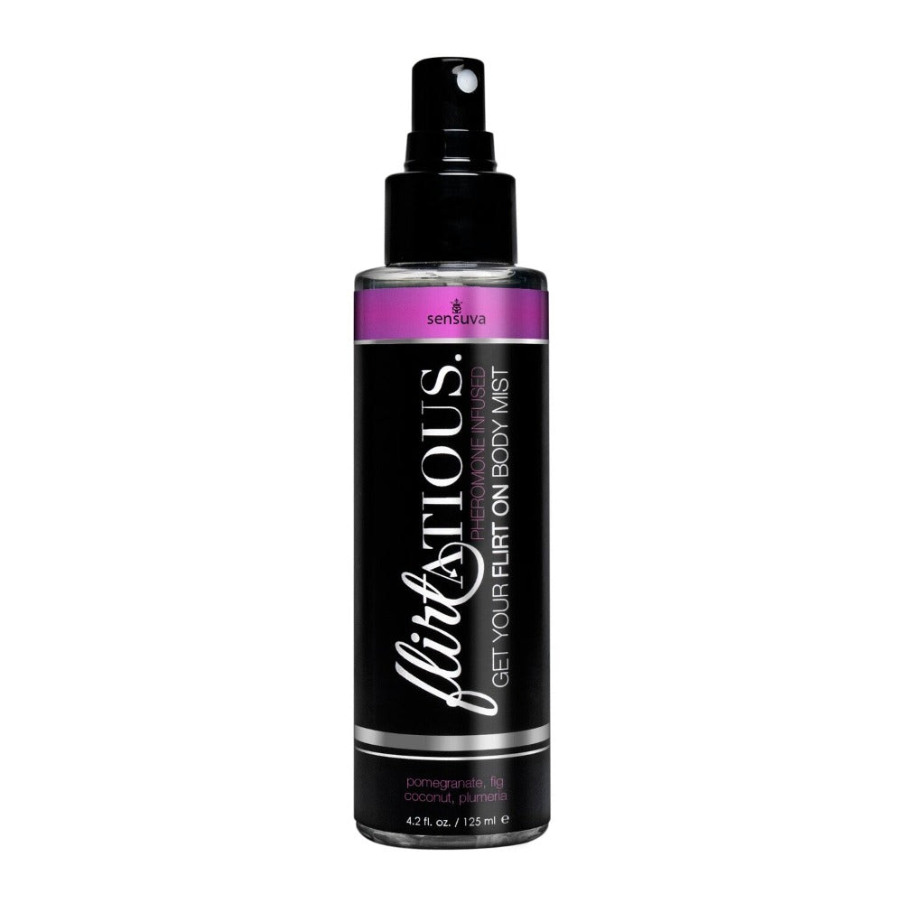 An irresistibly scented Body Mist from Sensuva's Flirtatious collection, this refreshing body care treat contains soothing witch hazel, tea tree oil, and vitamin E along with delicious herbal aphrodisiac-inspired unique scents and arousing pheromones.
