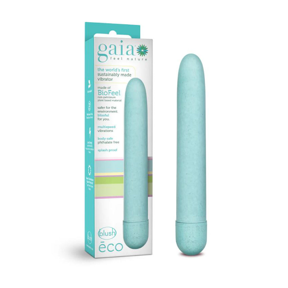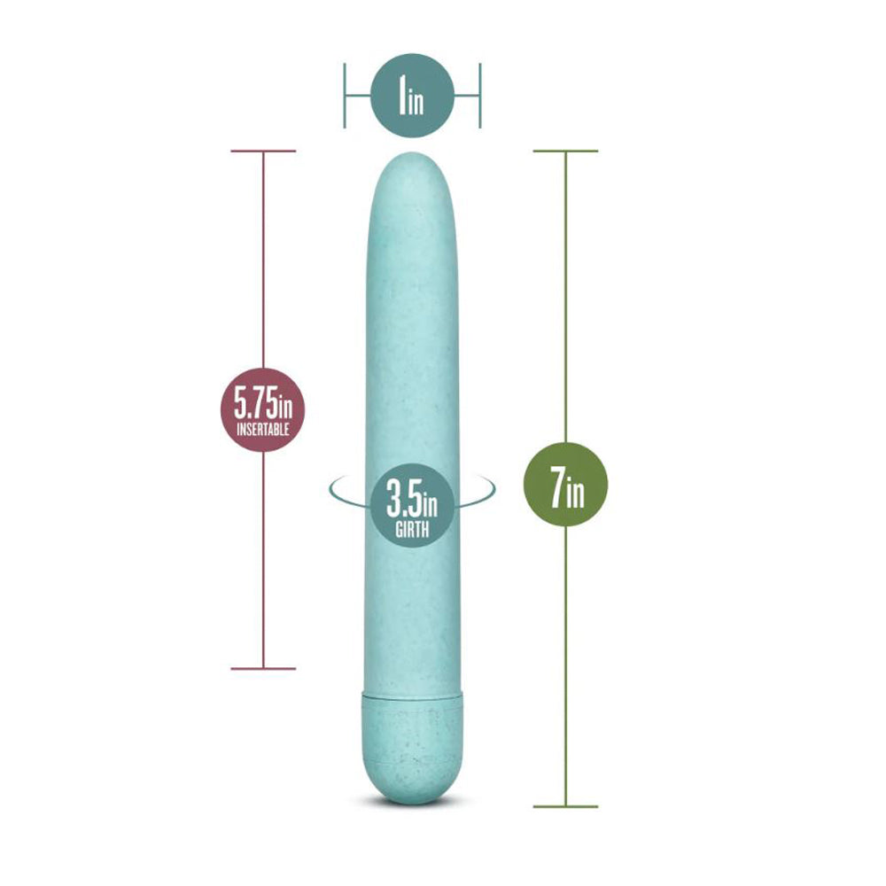 Gaia By Blush Eco Slim 7 Inch Multispeed Vibrator – Plant-Based BioFeel Waterproof Vibe – Aqua Blue