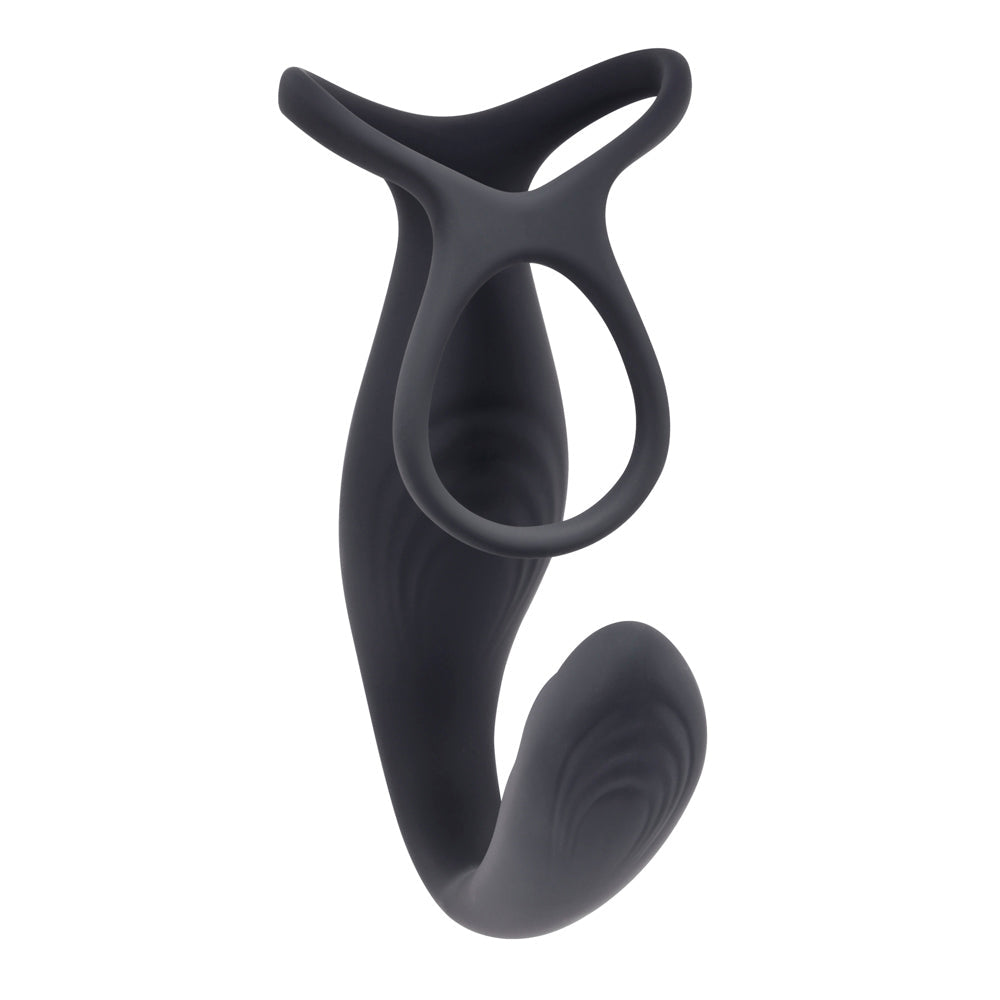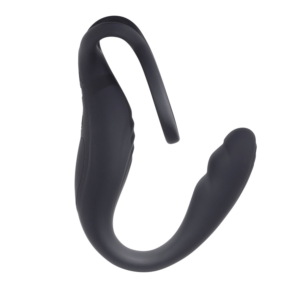The Wrangler is an innovative 3-part toy with two powerful motors that operate independently via remote control. The vibrating center piece and facing textured oval shaft connect with a thin flexible neck while two stretchy loops bend out from the other end, creating multiple possibilities.