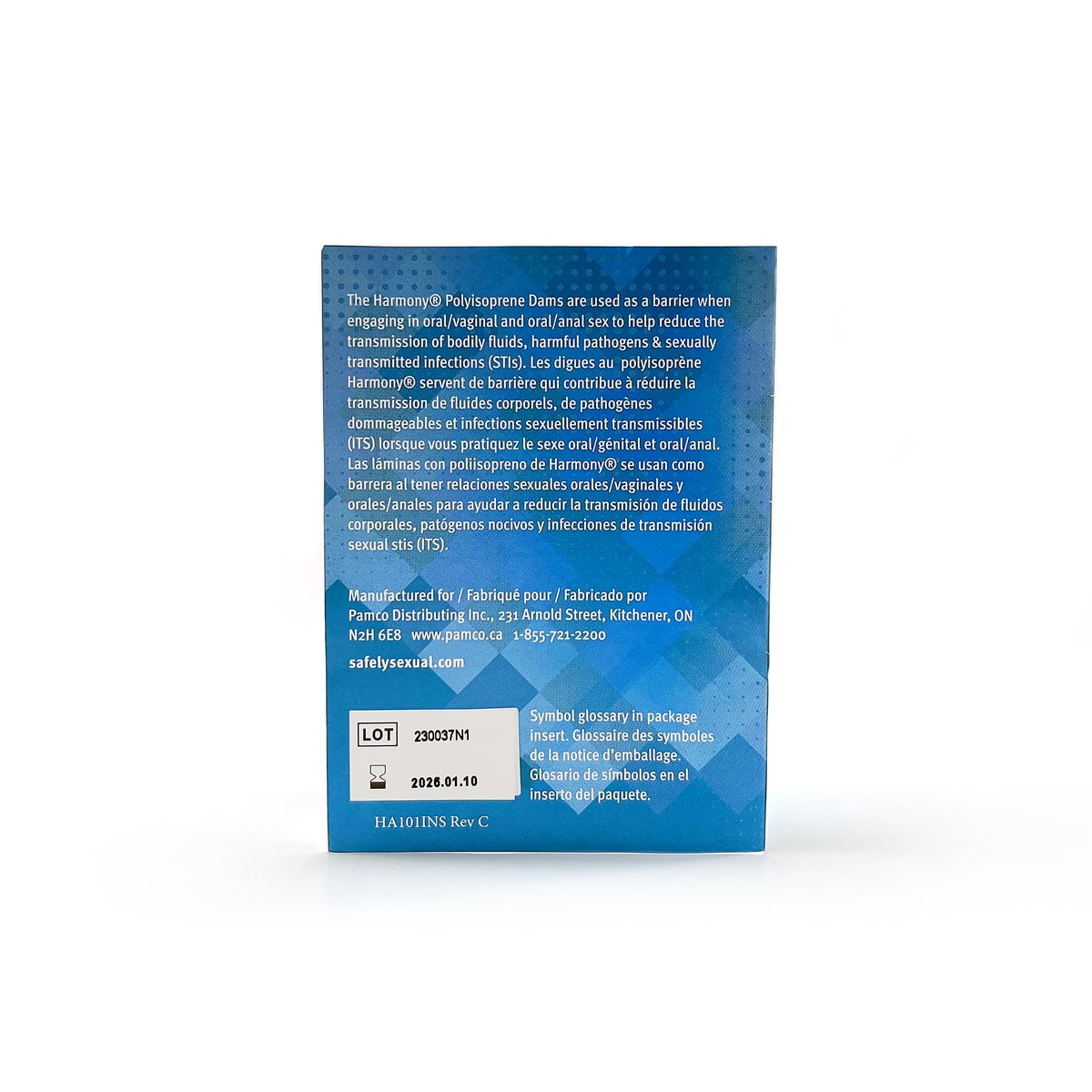 Harmony Dams offer the maximum coverage to help keep oral sex safer sex. Harmony Polyisoprene Dams were developed specifically for those who cannot use latex due to sensitivities or allergies, allowing everyone the opportunity to practice safer sex