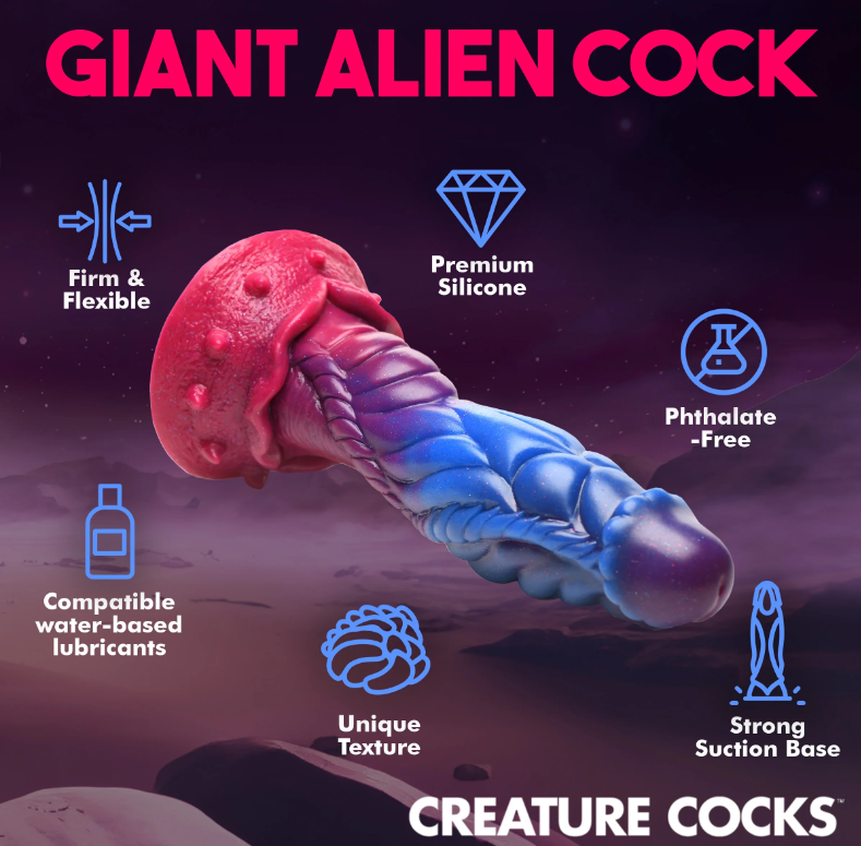 Unleash cosmic ecstasy with the Intruder Alien — a glittering, textured dildo built to take your fantasies to the farthest galaxies.