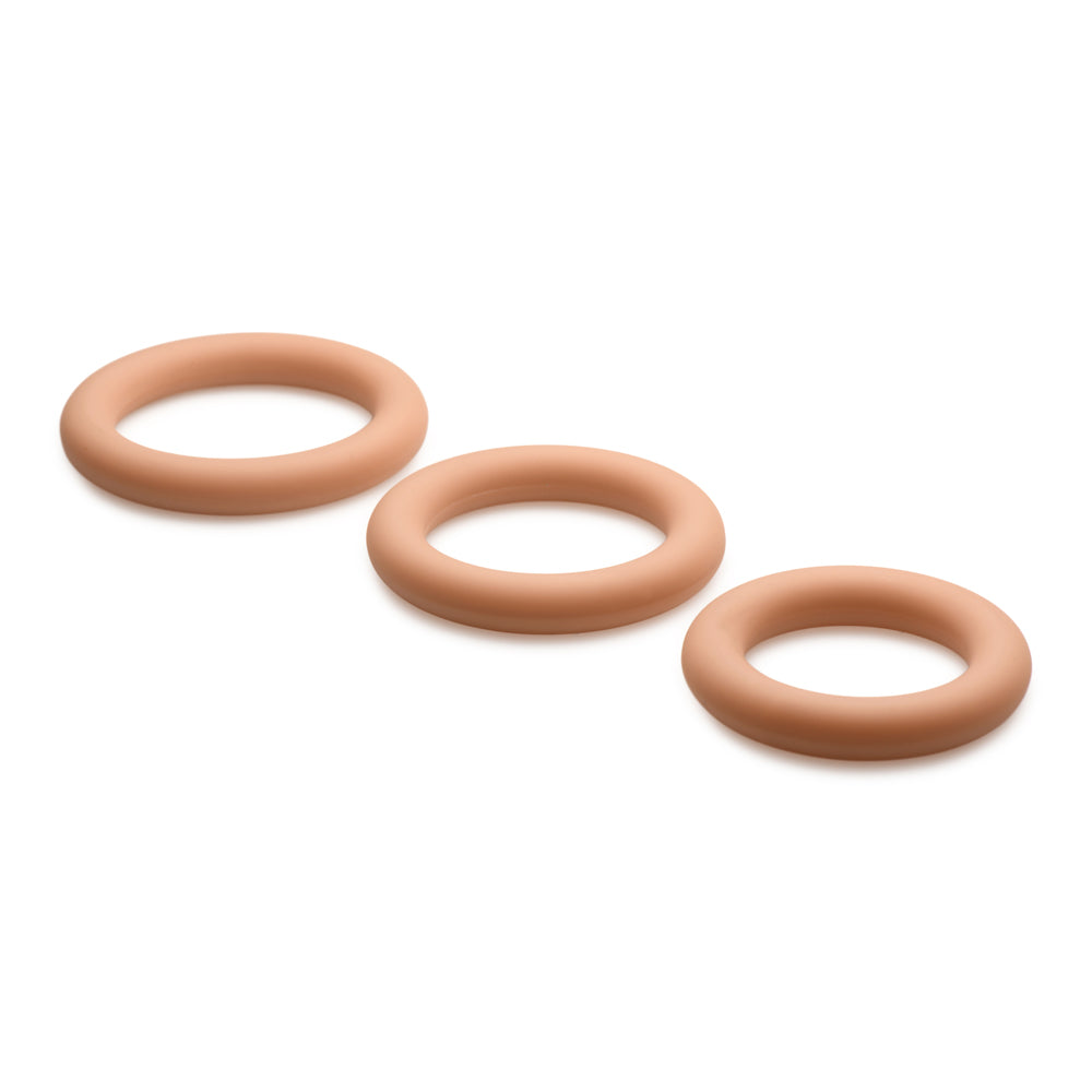 Last longer and stay harder with this silicone cock ring set! These three graduated rings give you a chance to try out three different sizes and find the perfect fit. Choose colors that match your skin tone for a more neutral look and enjoy premium silicone that is phthalate-free, body-safe, latex-free, and best used with water-based lubricants only. Stretch the rings around your shaft, balls, or both. Use them alone or combine them for added pressure and sensation!