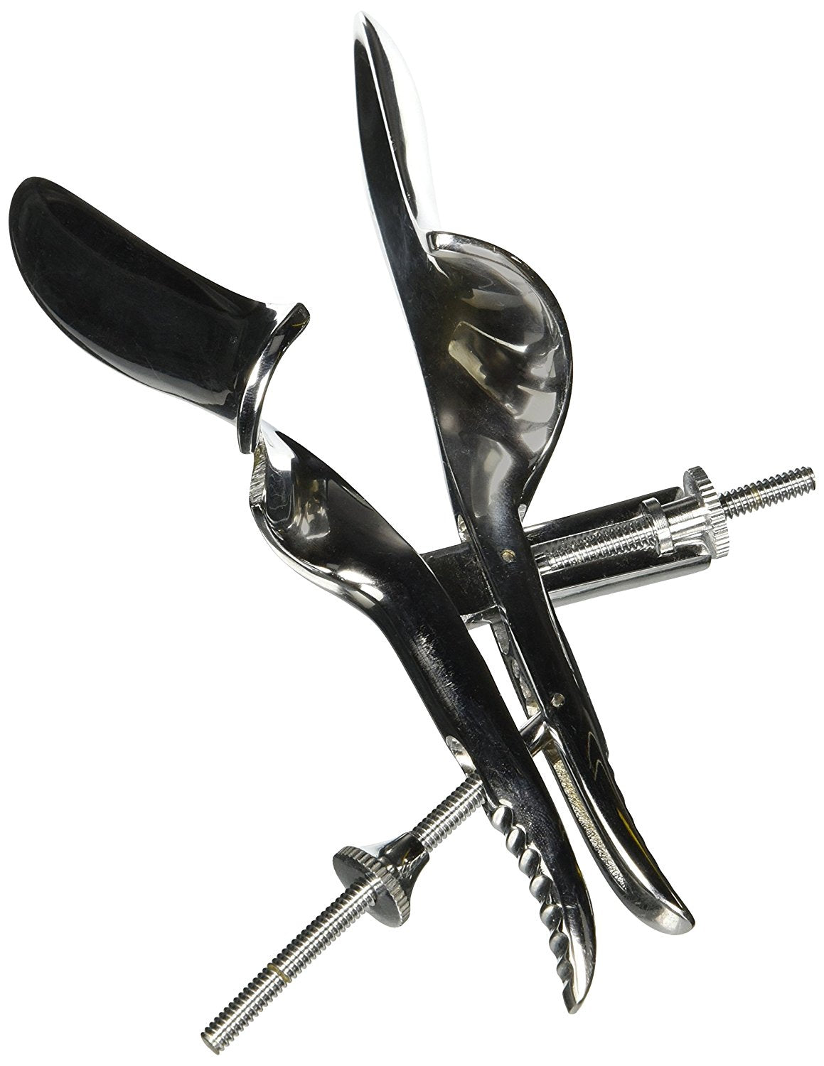 This unique medical grade Miller speculum is a gynecological device and is sure to leave you with a stretched out gaping hole. This is the most adjustable speculum we offer. The right adjustment wheel spreads the blades up to 3.5 inches wide. The left adjustment wheel adjusts the angle of the blades. The result is an impressive speculum.