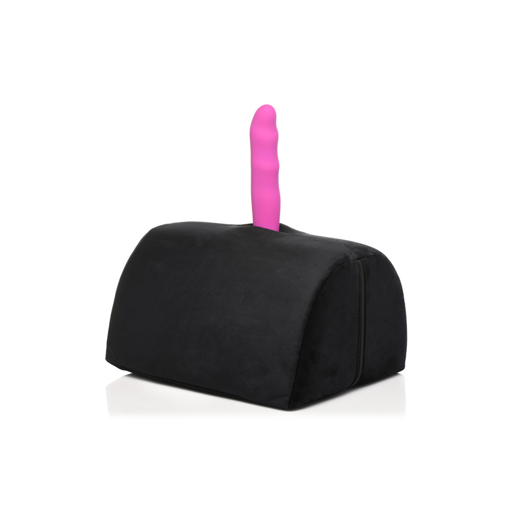Humping, grinding or riding your favorite dildo, vibrator or toy has never been easier! With this ergonomic saddle pillow made of high-density foam, you can insert your favorite toy into the pocket and ride it hands-free! The soft outer cover and the water-resistant inner cover protect the foam during even the wettest rides. Both covers are machine washable so caring for your saddle is easy! Enjoy hands-free stimulation as you straddle the ultra soft pillow, effortlessly lifted up so you can enjoy your partner's passionate affections or angle yourself to ride the toy of your choosing! The toy pocket at the top fits most toys but is especially designed for wands, vibrators and dildos. Spice up your sex life and use a vibrator while getting penetrated by your partner!