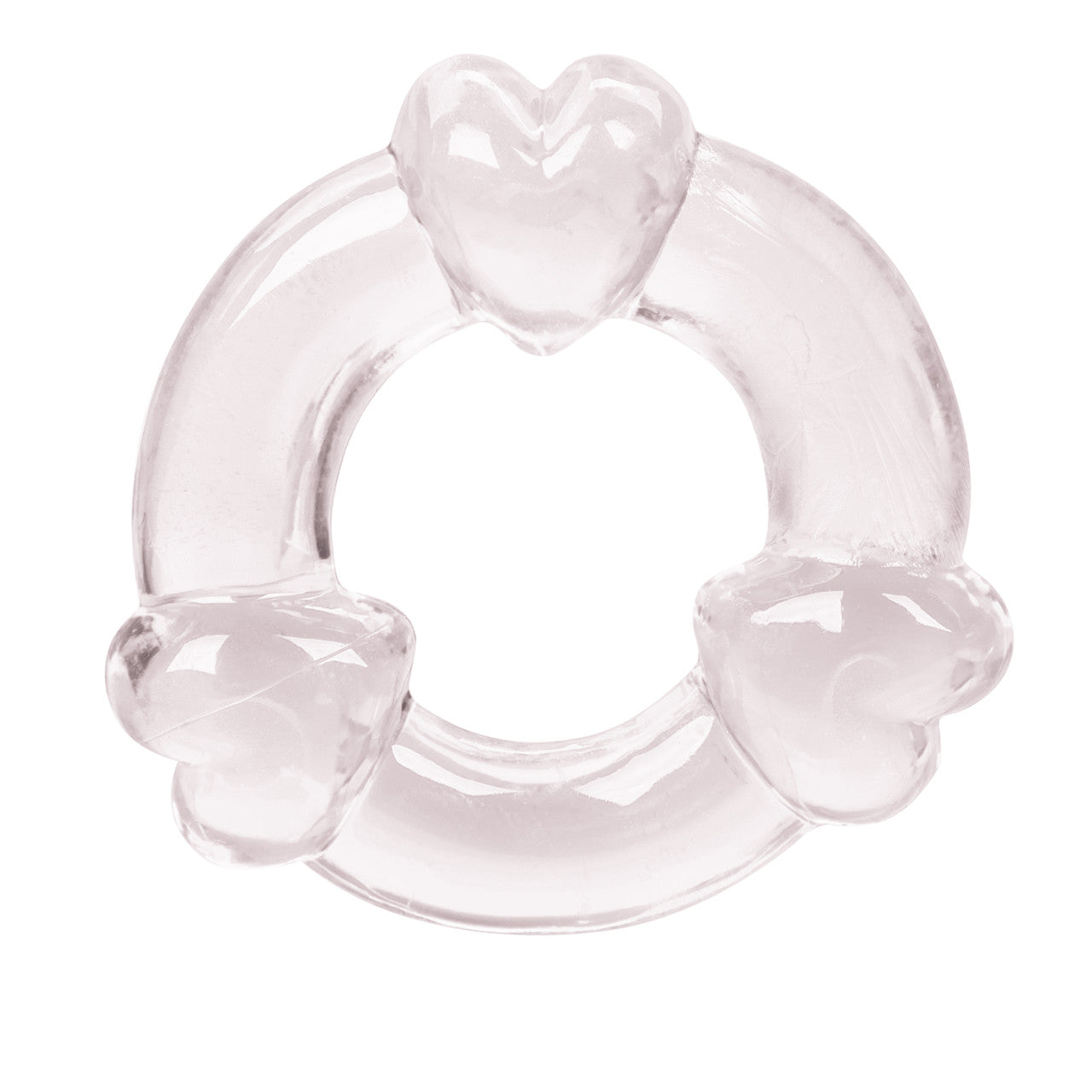 Made from sturdy soft and smooth, hygienically superior TPR, the transparent rings are adorned with sensuous heart and star shaped pleasure nodules, for enhanced sensitivity and increased stimulation. The 3 tantalizing erection rings are designed to support erection stamina for prolonged erotic performances. To use, choose your preferred nodule ring and slide it on to the erect penis, for a secure fit at the base. Use a quality lubricant for heightened sensations and mind-blowing enjoyment.