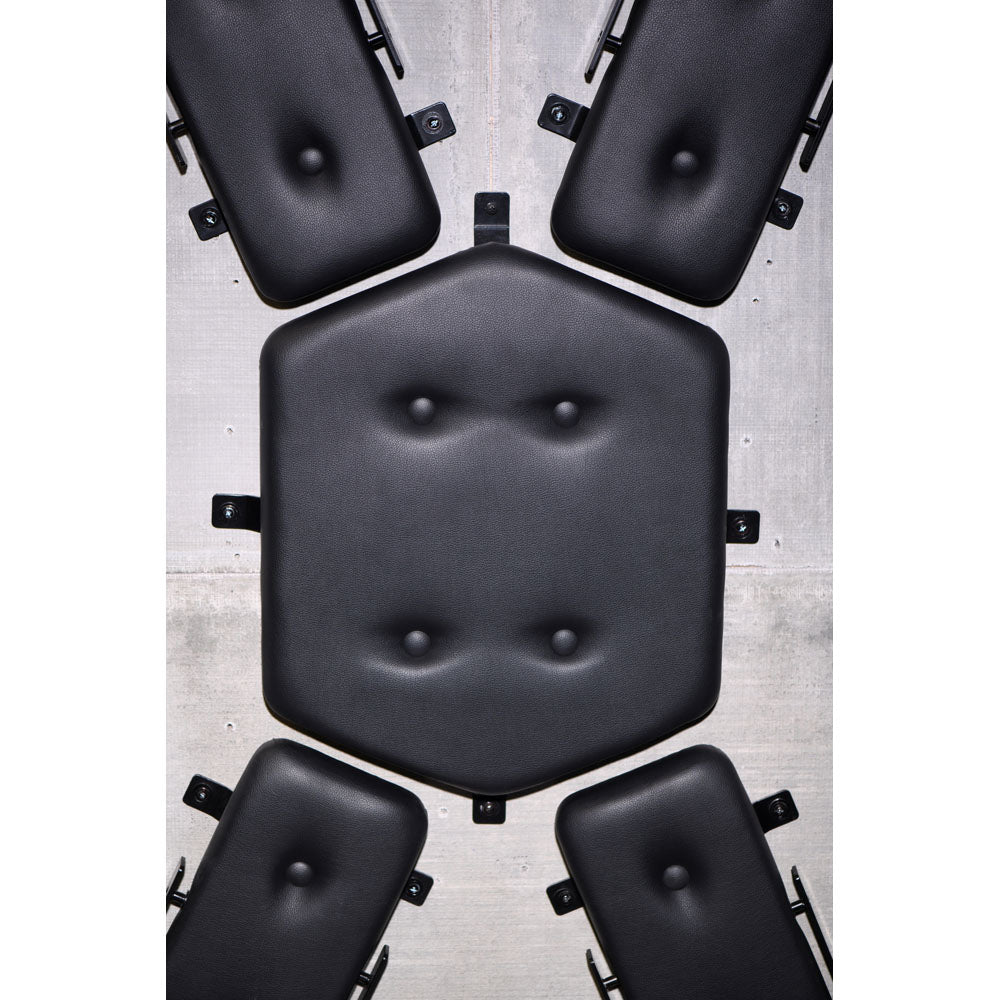 Optimize your kinky play with this wall-mounted St. Andrew's Cross! This plush, padded cross lays flat against the wall so you have more floor space! It's perfect for smaller rooms and gives you more square footage to place other kinky pieces in the room along with the cross. It's also great for rooms that have dual use such as a bedroom where you can hide a cross behind a curtain or dresser. The cross comes in 5 separate pieces and is shipped in a flat package discreetly to your address! Assemble it with the help of a drill and stud finder and place the 5 pieces exactly at the height that you prefer for easy and ergonomic scenes. The ultra plush pads are covered in PVC faux leather, are extra comfortable and easy to clean with a toy cleaner or isopropyl alcohol spray. Along the sides of each leg and arm pad are attachment points where you can attach wrist and ankle cuffs, rope, or other kink accessories! Get your submissive to stand upright for impact play whenever you like with this easy to install, easy to hide and compact St. Andrew's Cross!