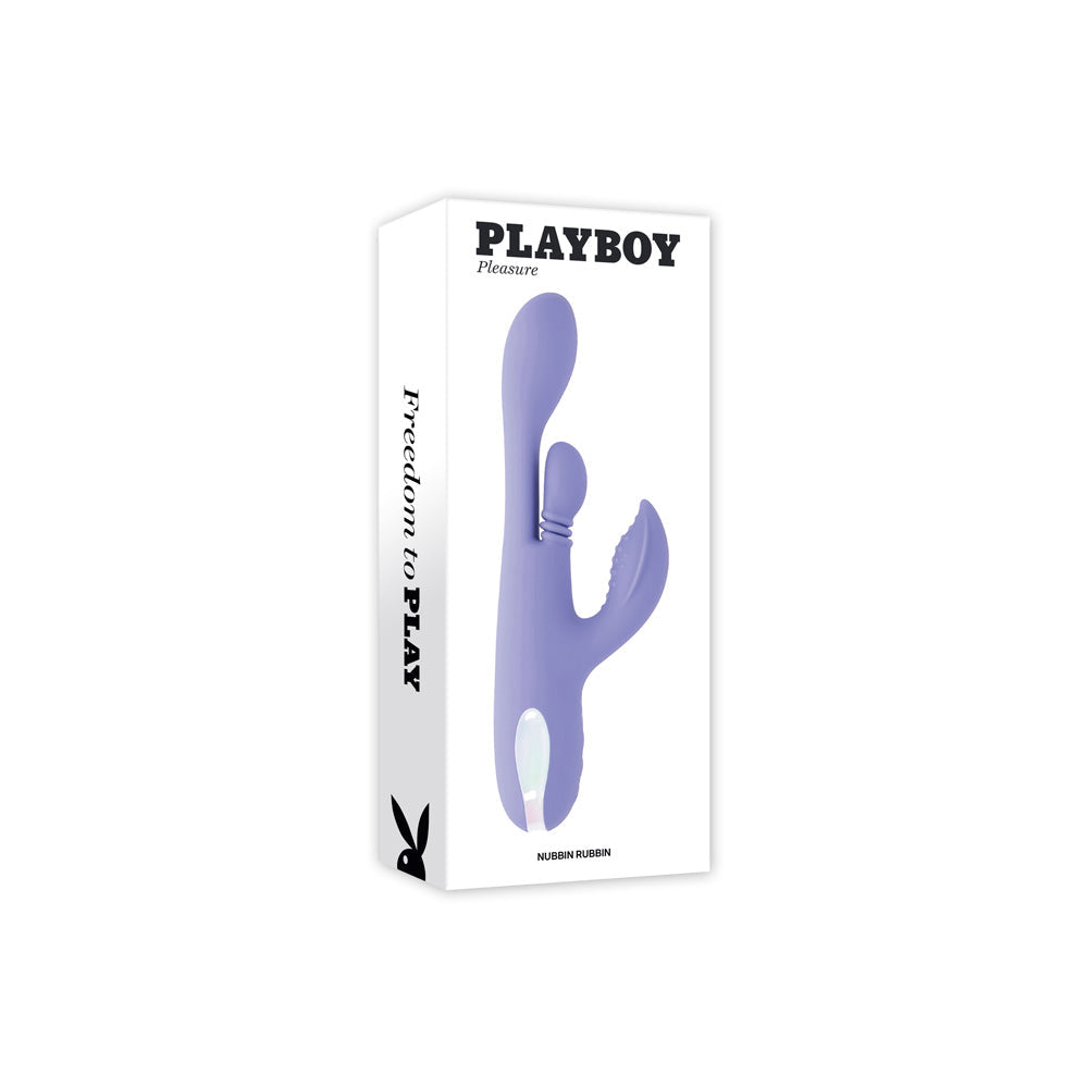 The Playboy Pleasure Nubbin Rubbin turns every touch into a decadent adventure with a unique triple-action design. Its silky shaft thrusts and vibrates against your G-spot while a wide, textured stimulator caresses your clit — and the surprise nub swirls and drives at the base, delivering an entirely new level of ecstasy. With three independent motors, 30 customizable settings, and a sleek lavender finish, this indulgent toy creates an unforgettable symphony of sensation.