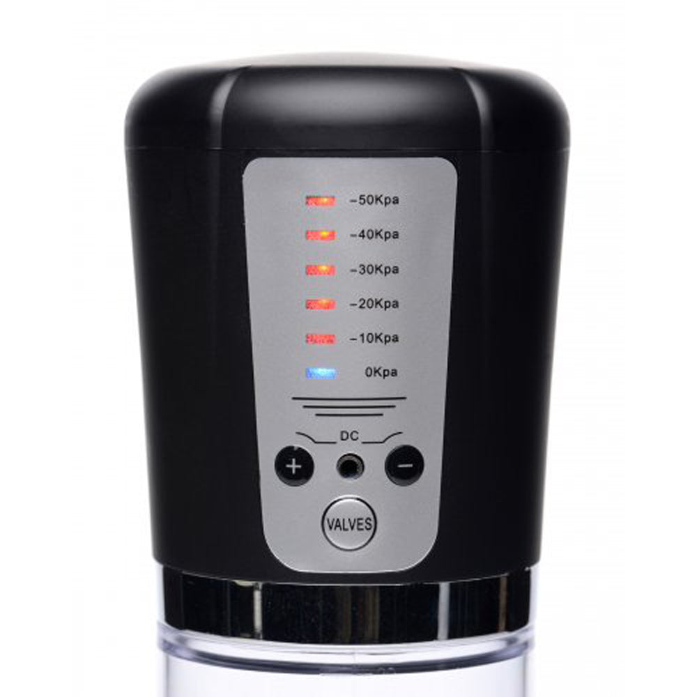 Just use the plus and minus buttons at the top of the cylinder to find the perfect amount of suction, with 5 pressure settings to choose from. Aside from a useful display to keep track of your gains, this auto penis pump is also equipped with measurements along the length of the cylinder. The textured cylinder is easy to maintain your grasp on, while a silicone sleeve creates a tight seal around the base of your cock. Use a little water-based lube to comfortably slide in and out of the cylinder. Finally, an easy-to-use pressure release valve will quickly free your dick when you are satisfied with the size and sensations.