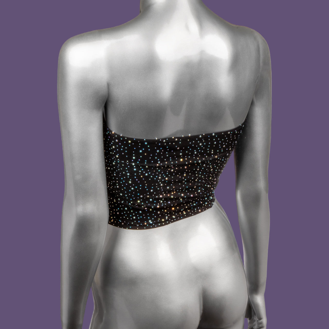 The Radiance Bandeau Top redefines effortless allure with a touch of radiance. Crafted from soft, flexible mesh that moves fluidly with your body, it’s adorned with glimmering rhinestones that reflect light in a subtle yet striking way. The strapless silhouette enhances the shoulders and neckline, creating a clean, confident look that’s as comfortable as it is captivating. Lightweight and breathable, this piece transitions flawlessly from lingerie styling to night-out fashion — simple, sensual, and unforgettable.
