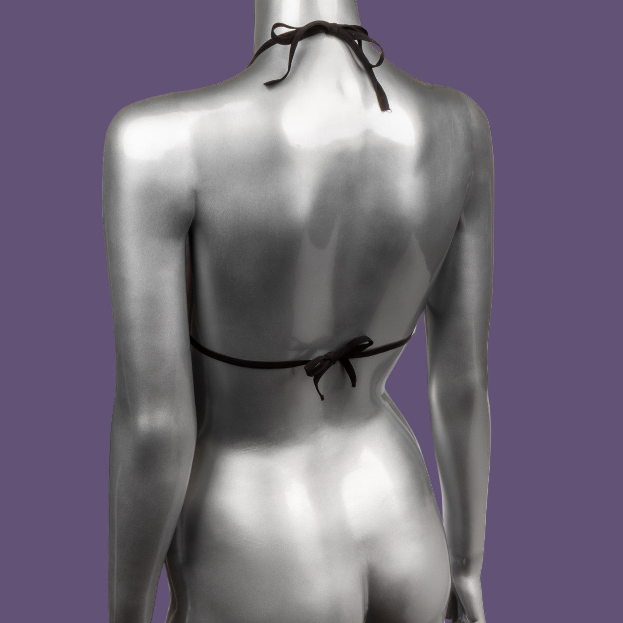 The Radiance 1-Piece Triangle Bikini Top brings shimmer, style, and comfort together in one stunning piece. Designed with soft, stretch mesh adorned with rhinestone accents, this top offers a flattering fit that hugs your curves while catching the light beautifully. The adjustable halter and back ties provide a customized, comfortable fit, making it perfect for layering or styling as playful statement wear.