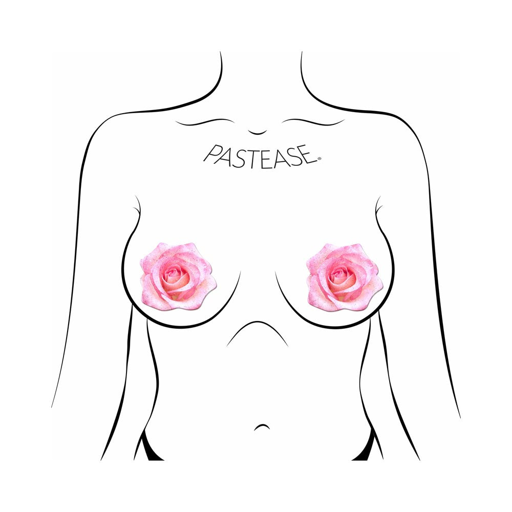 Rose: Pink Glitter Velvet Blooming Rose Flower Nipple Pasties by Pastease® o/s