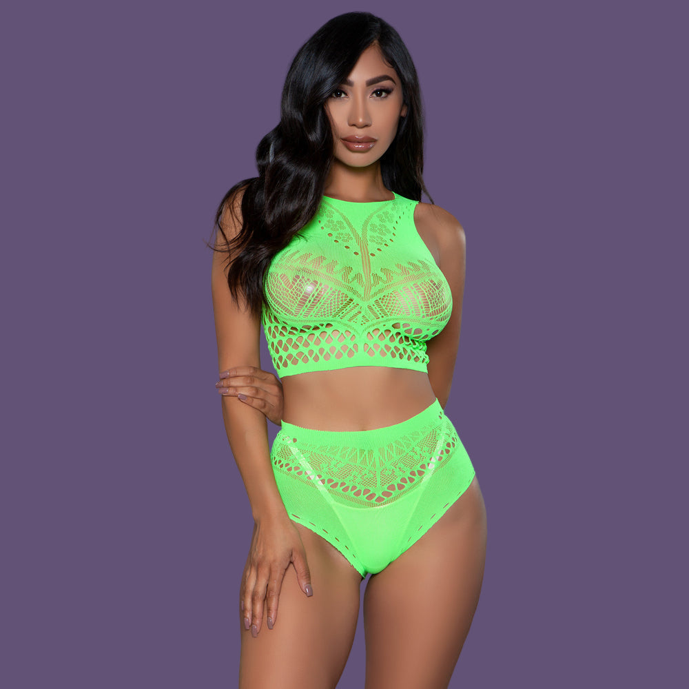 Light up the night in bold neon — this vibrant two-piece set is made to command attention.