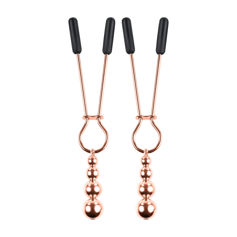 Discover the erotic sensation of nipple clamps with hanging beads that deliver a delicious weighted sensation and sexy visual appeal.