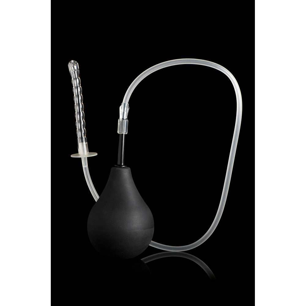 Keep yourself fresh on the go with this lightweight, user-friendly, compact enema kit! The black bulb has a pointed, tapered tip for easy insertion that you can use on its own or along with the tubing and attachments. For those who want to have a little more reach and control, the 23.5 inch tubing combined with one of the attachments lets you find a comfortable position and not have to hold the douche right at your derriere. Instead, you can easily find a comfortable spot and hold the enema bulb comfortably in your hand as you fill up your booty with fresh water or fluids! Use one of the three attachments and get a personalized touch; enjoy either of the two, smooth, tapered attachments or give yourself some stimulation with beaded and tapered attachment. All three connect securely to the end of the tubing which has the added safety feature of a flanged, wide end. Wash with warm water and toy cleaner after each use. Feel free to soak items in warm water and soap for a deeper clean. Pat dry and store in a cool, dry location, away from direct sunlight and separated from other toys.