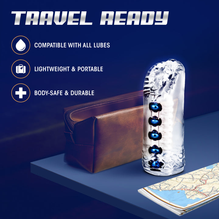 For the man on the go, don't forget to grab this sexy snatch this before you head out! Handcrafted from ultra soft X5 Plus TPE your shaft will be enveloped in a cloud of ecstasy. With its stretchy, sensuously soft, realistic feel and a row of 5 pleasure pearls in the ribbed canal, all together they massage your shaft for the utmost in intense stimulation. This tunnel of lovin’ is 5.5 inches long, warms to the touch and is definitely slippery enough when wet, that you will cum again and again! Use it solo or have your lover do it for you and implement it in your foreplay sessions. It’s about time you enjoyed a sexy snatch and one that you can pop in to play with, whenever you want! Refresh it with our Blush Toy Renewal Powder when product is clean and dry. Compatible with water based and silicone based and hybrid lubricants.
