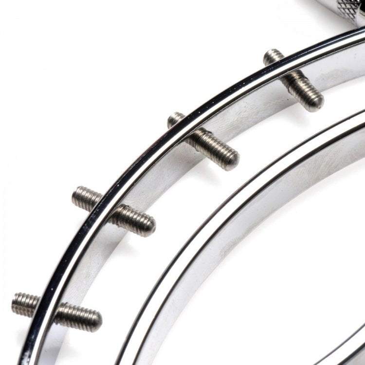 - Pinching Clamps: There are 4 pinch screws on either side of the clamps that can be adjusted using the allen wrench included. These add an extra bite of pressure against the labia for sadistic fun!