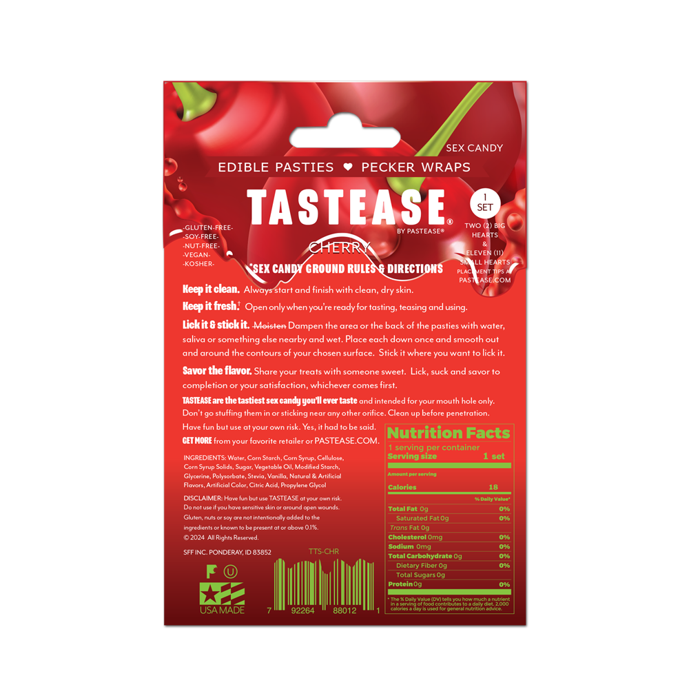 TASTEASE are the tastiest sex candy you'll ever taste and intended for your mouth whole only. Don't go stuffing them in or sticking them near any orifice. Clean up before penetration. Have fun but use at your own risk, yes it has to be said.
