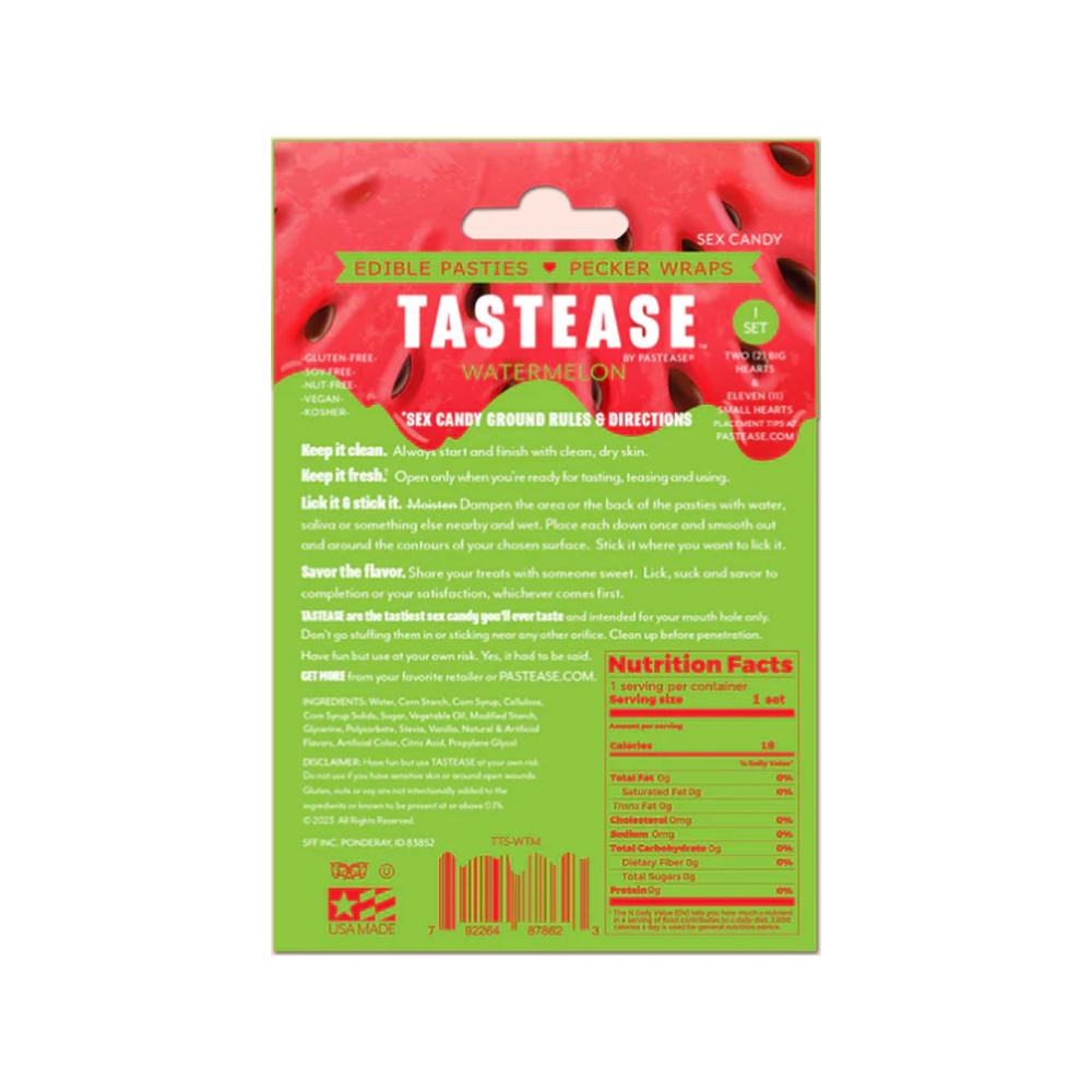 TASTEASE are the tastiest sex candy you'll ever taste and intended for your mouth whole only. Don't go stuffing them in or sticking them near any orifice. Clean up before penetration. Have fun but use at your own risk, yes it has to be said.