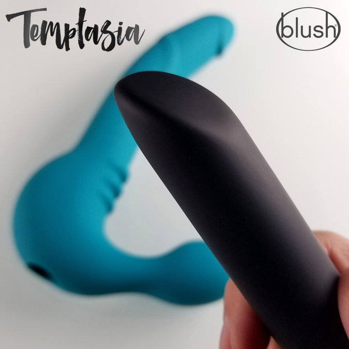 Temptasia By Blush Luna Curved Teal 9 Inch Long Rechargeable Vibrating Dildo