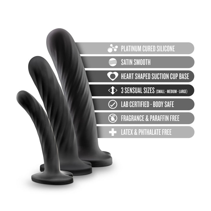 Temptasia By Blush Twist Kit Black Dildos with Suction Cup Base - 3-Piece