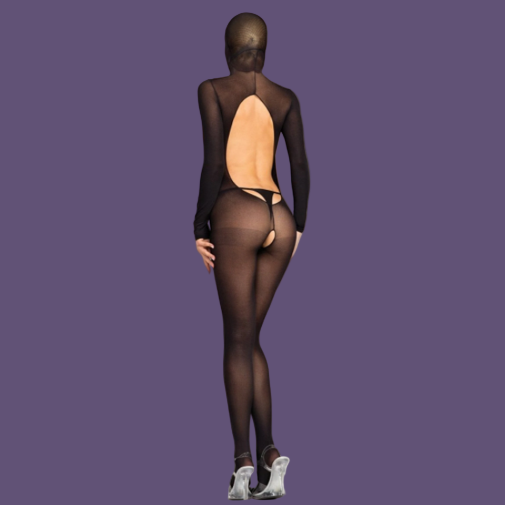 Fearless. Daring. Unapologetically bold. This sheer full-body stocking redefines seduction with its daring open design.