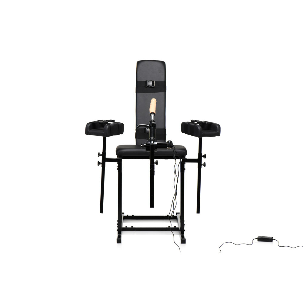 Includes Sex Machine and Dildo: The detachable sex machine connects to the center of the chair and thrusts up to 195 RPM. Use the corded, handheld controller with variable speed dial to choose your thrusting speed! Remove the sex machine when not in use and enjoy the chair in other ways!