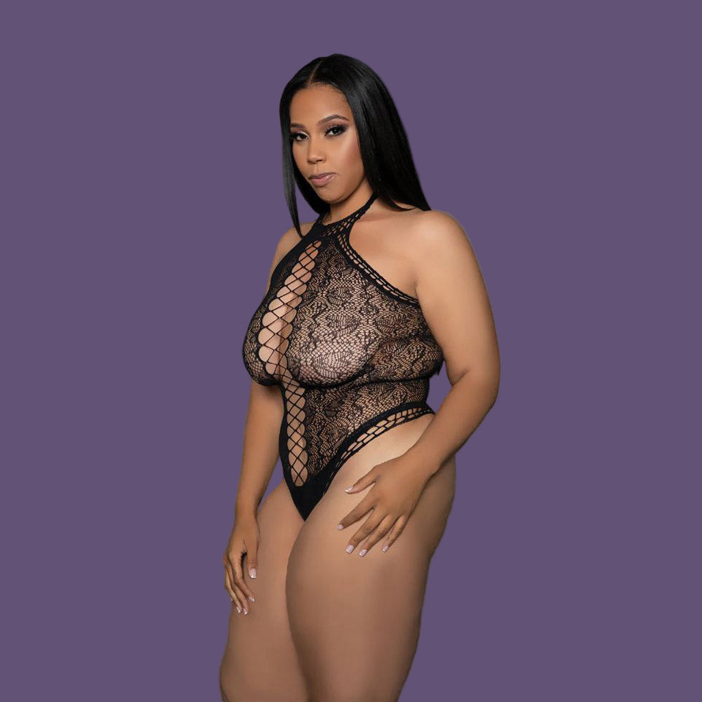 The Be Wicked Unforgettable Nights Bodysuit turns confidence into seduction. Crafted from intricate lace with a high halter neckline and daring open back, it’s designed to flatter and entice. The front and back lace-up details draw the eye along every curve, while the bow lace pattern adds a touch of romantic charm — a statement piece made for unforgettable moments of self-assured sensuality.