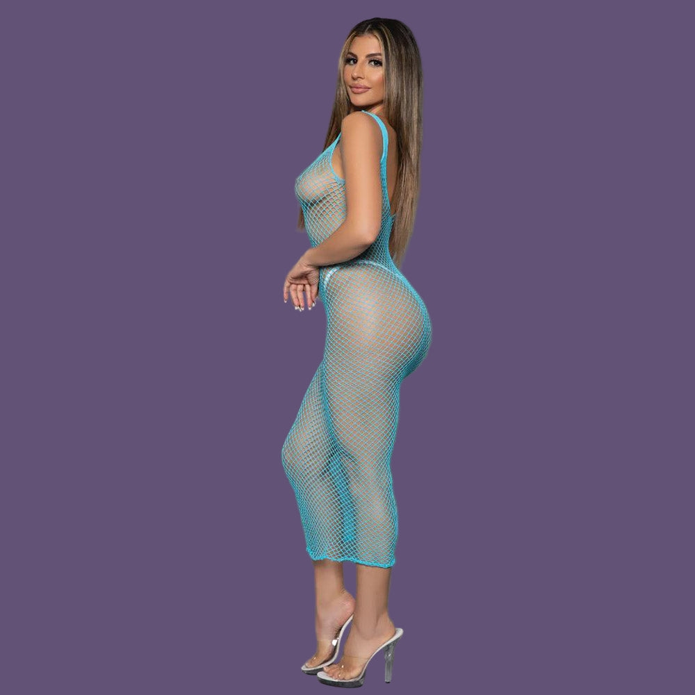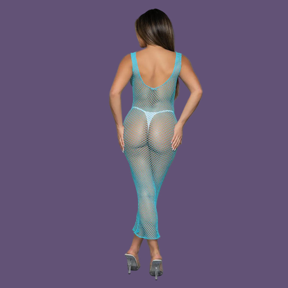 Be Wicked Unleash Me Fishnet Maxi Dress - Turquoise - OS