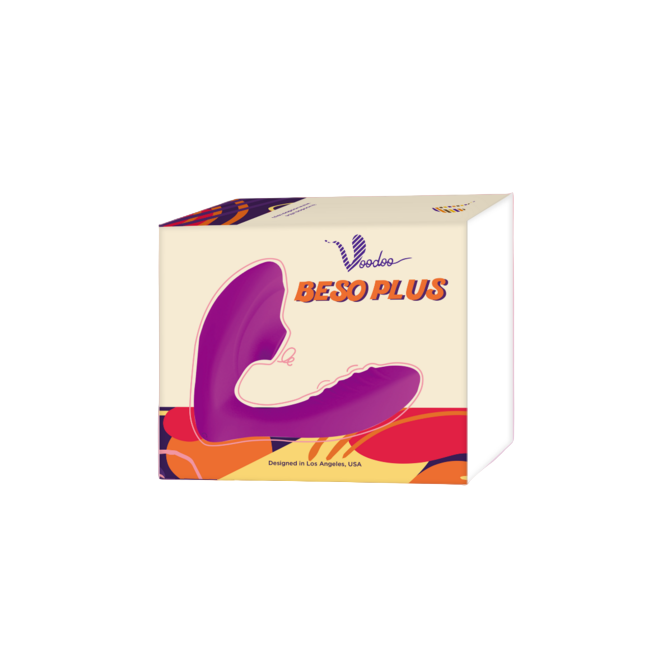 The Voodoo Beso Plus is designed to indulge both clitoral and G-spot pleasure at once. Its unique shape combines 10 air pulse suction patterns with 10 vibration modes, while the ridged texture targets your G-spot for even more sensation. Crafted from soft, premium silicone, this dual-action toy feels luxurious against your skin and adapts to every curve. Fully waterproof and USB rechargeable, Beso Plus makes self-love feel like royalty whether in bed, bath, or shower.