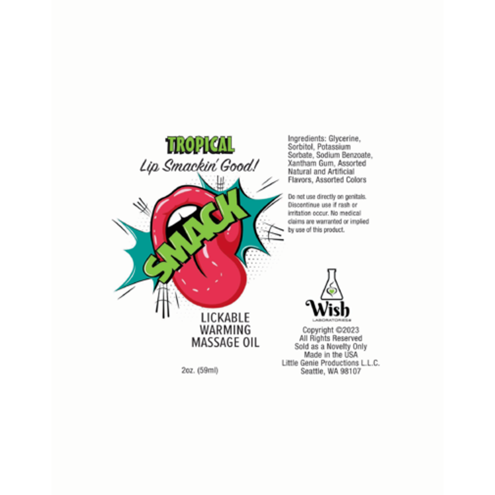 Take your partner on a tantalizing flavor journey with Smack Warming & Lickable Massage Oil. Engage in a tasty and playful massage experience in six delectable flavors: Blue Raspberry, Cherry, Passion Fruit, Peach, Strawberry, and Tropical.