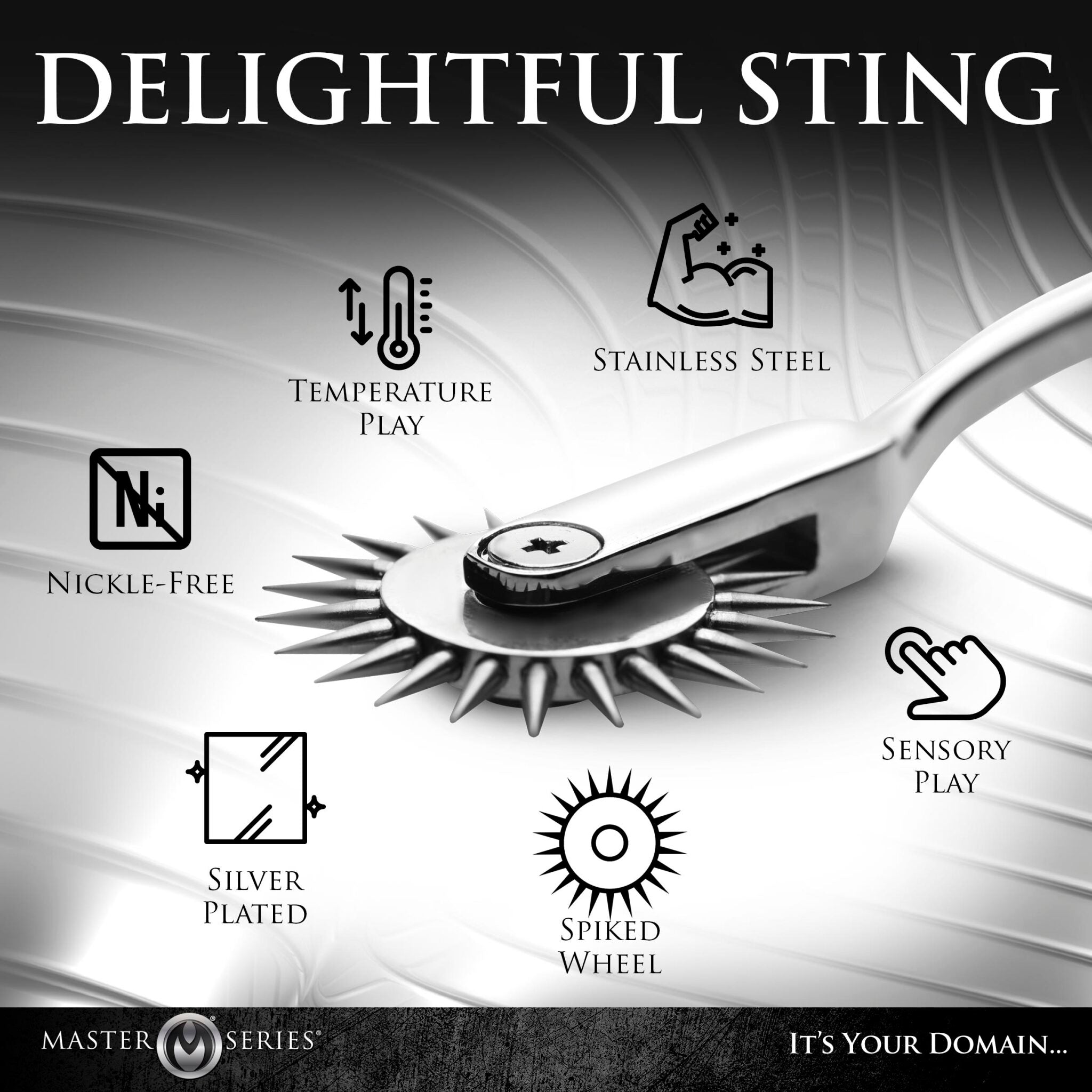 Wake up your partner's senses with this Wartenberg wheel! The metal wheel of needles are blunt enough to use on the skin but prickly enough to heighten sensation and give them goosebumps across their flesh! Use it during sensation-play and in kinky scenes to add another layer of desire-invoking teasing!